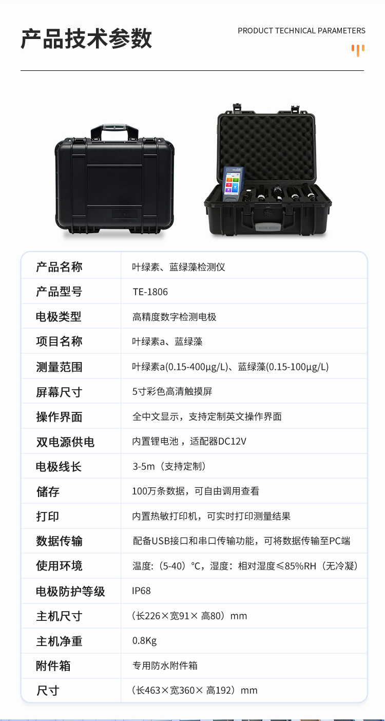 ※ 檢測項目有COD,TOC,氨氮,濁度,懸浮物,葉綠素,藍綠藻,余氯,pH,溶解氧,溫度,電導(dǎo)率,ORP,TDS,水中油(可定制項目);